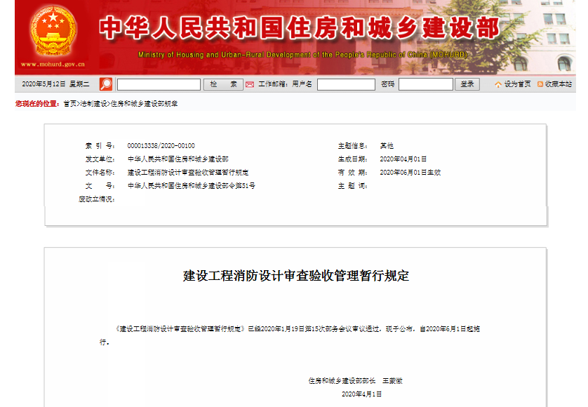 建设工程消防设计审查验收管理暂行规定 《建设工程消防设计审查验收管理暂行规定》已经2020年1月19日第15次部务会议审议通过,现予公布,自2020年6月1日起施行。 ...