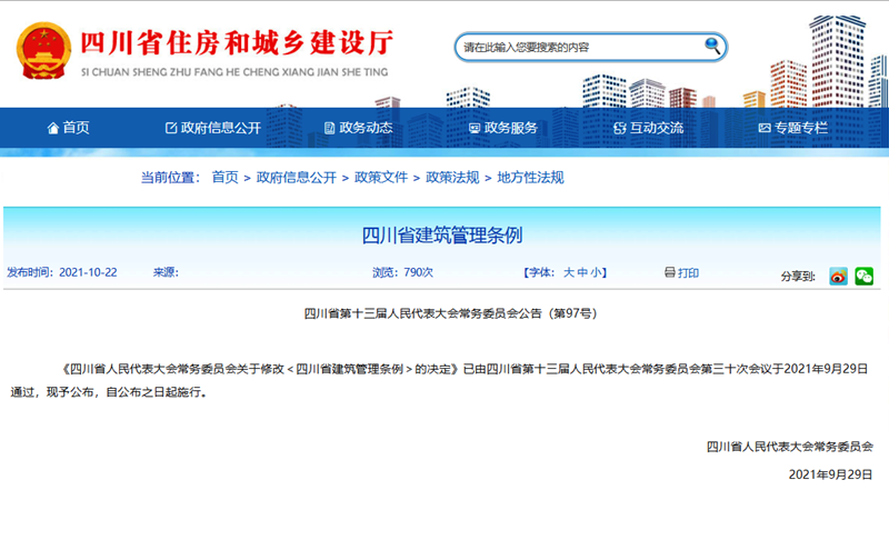 四川省建筑管理条例 第一条 为了贯彻创新、协调、绿色、开放、共享的发展理念,维护建筑活动当事人的合法权益,规范建筑市场秩序,保证建设工程质量,提高建设工作投资效益,促进建筑业健康发展,根据国家有...