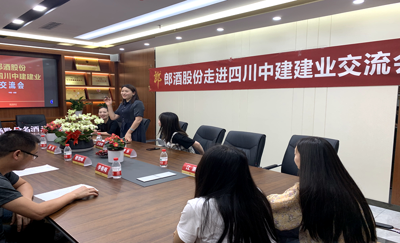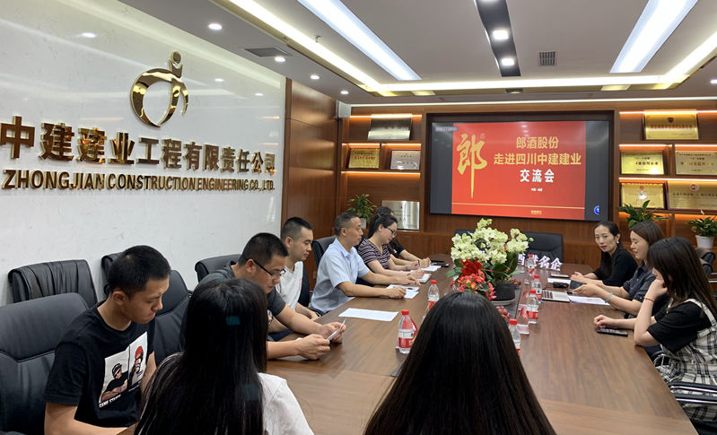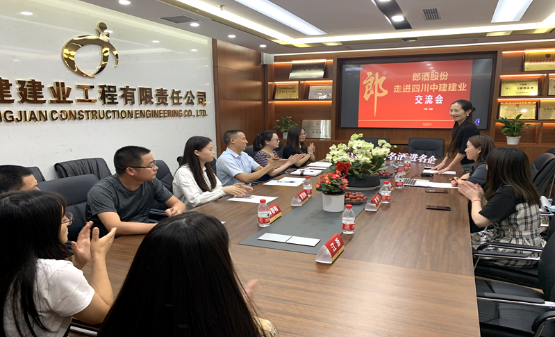 2020年5月29日,名酒进名企—郎酒股份走进四川中建建业交流会,在四川中建建业会议室举行。郎牌特曲仁岸酒业总经理助理刘丹、郎酒股份王俊梅、李乐一行到四川中建建业座谈交流。