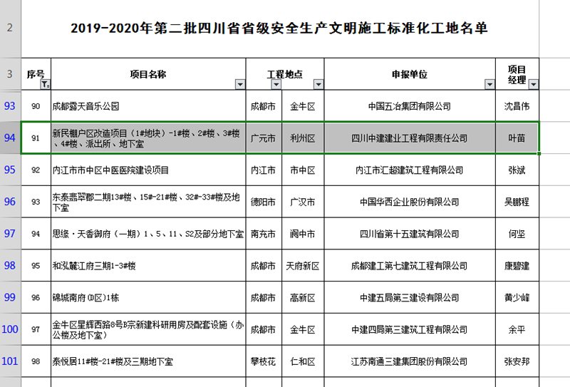 2020年7月15日,经四川省建设工程质量安全与监理协会考评,四川中建建业工程有限责任公司新民棚户区改造项目荣获2019-2020年第二批“四川省省级安全生产文明施工标准化工地”称号。