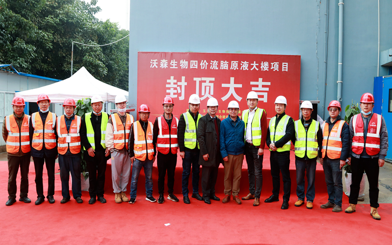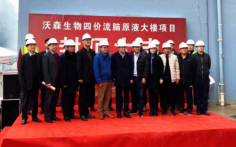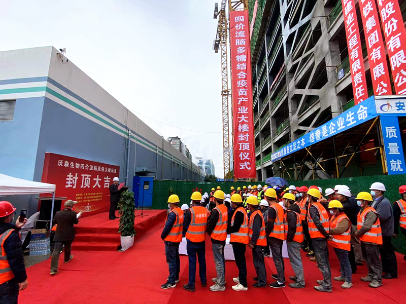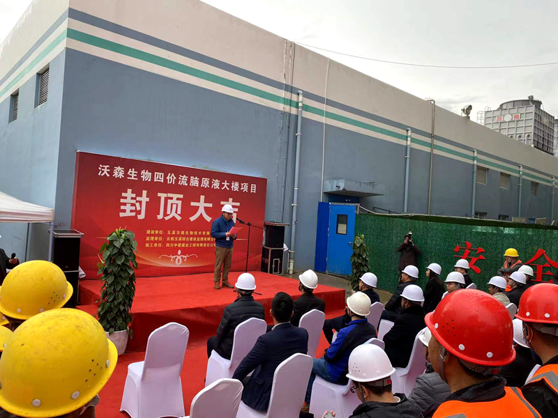 2022年1月16日上午,云南省玉溪沃森生物技术有限公司生产园区内,彩旗飘飘,人头攒动,热闹纷繁,由四川中建建业工程有限责任公司承建的四价流脑多糖结合疫苗产业化暨多糖结合疫苗扩产扩能项目主体工程封顶仪式顺利举行。玉溪沃森生物技术有限公司董事长和设计单位、建设单位、监理单位领导及相关单位代表到场参与仪式,共同见证这激动人心的时刻。