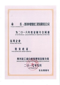四川中建建业工程有限责任公司被命名为“二〇一六年度省属守合同重信用企业”