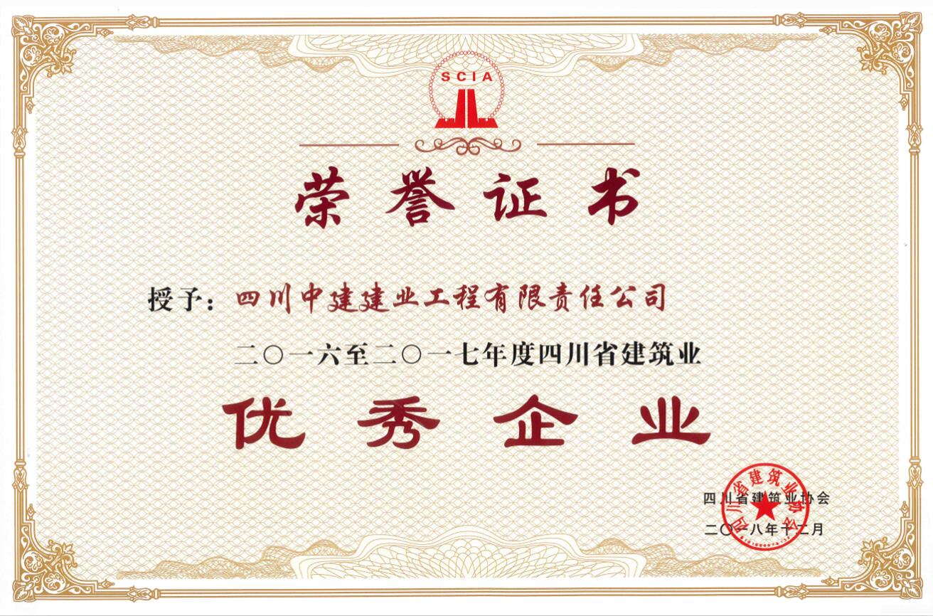 表彰会上,我公司被表彰为2016年度至2017年度四川省建筑业优秀企业、公司董事长兼总经理何正刚先生也获得了2016至2017年度四川省建筑业优秀经理的光荣称号。